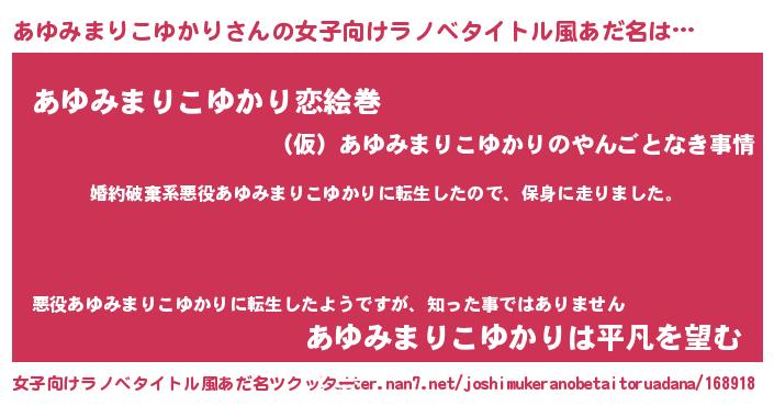 | 男性向けラノベタイトル風あだ名 | 『アユミマリコユカリスレイヤー』 |