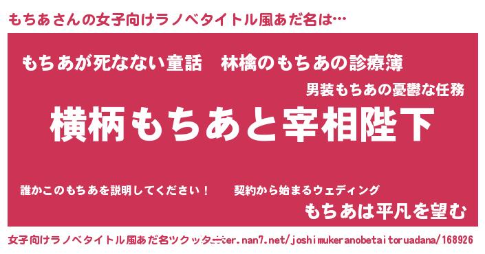 | 意味不明あだ名 | 『住所不定無職もちあ(74歳)』『自称もちあ』 |