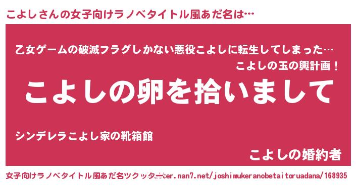 | 男性向けラノベタイトル風あだ名 | 『ダンジョンにこよしを求めるのは間違っているだろうか』 |