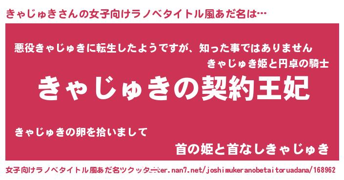 | 胡散臭い通販商品みたいなあだ名 | 『来世でも幸せになれる健康食品…その名も「きゃじゅき」』 |