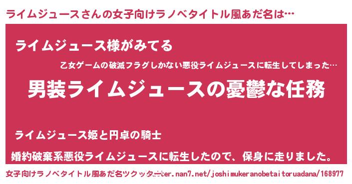 | 男性向けラノベタイトル風あだ名 | 『うちのライムジュースが世界を掌握している!』 |