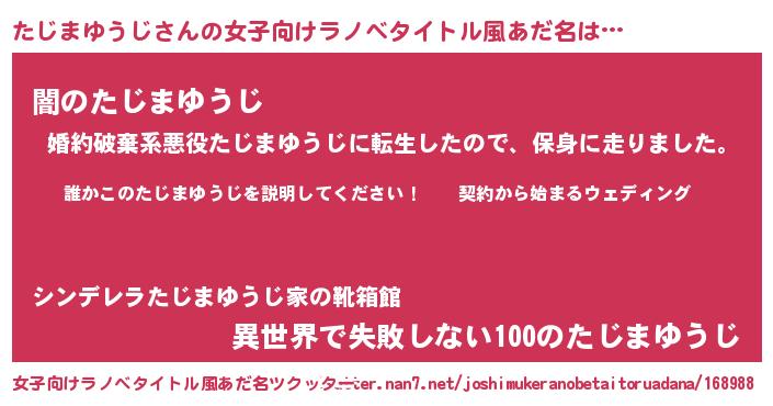 | 男性向けラノベタイトル風あだ名 | 『タジマユウジアートオンライン』 |