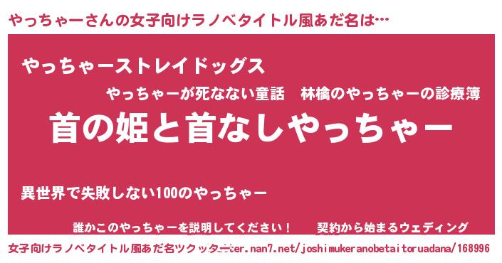 | 意味不明あだ名 | 『自称やっちゃー』『ペロリンやっちゃー』 |