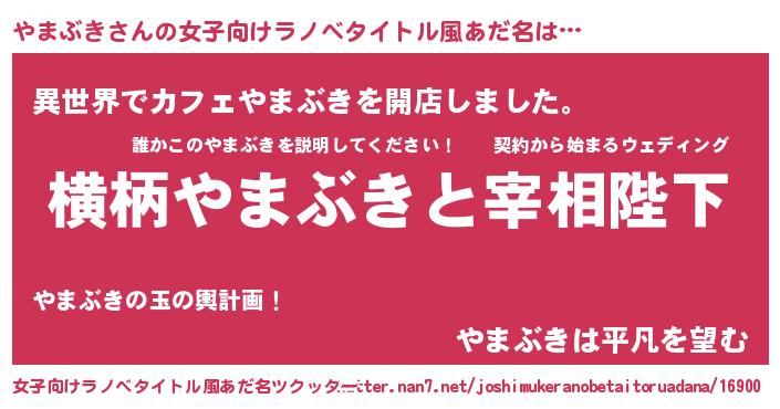 | 男性向けラノベタイトル風あだ名 | 『やまぶきに滅ぼされるだけの簡単なお仕事です』 |