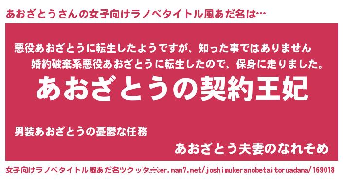 | 胡散臭い通販商品みたいなあだ名 | 『来世でも幸せになれる水素水…その名も「あおざとう」』 |