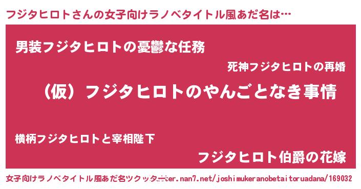 | 男性向けラノベタイトル風あだ名 | 『フジタヒロトの憂鬱』 |