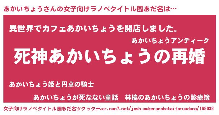 | ヒーロー風カッコイイあだ名 | 『慈愛の使者あかいちょう』 |