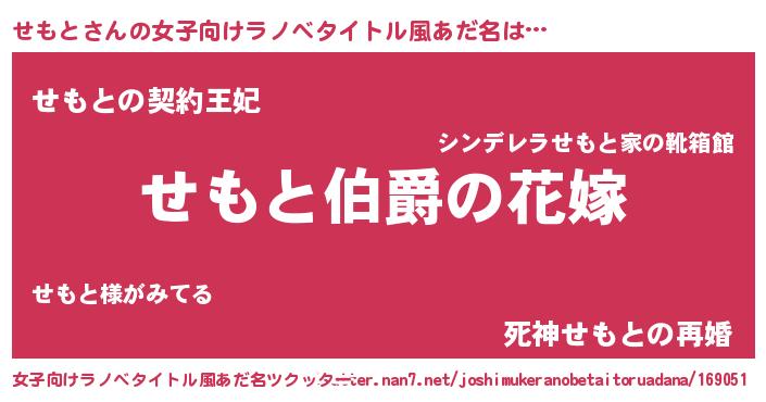 | ファンタジー風あだ名 | 『エターナルセモトー』『セモディッシュ』 |