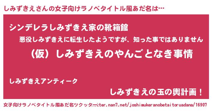 | 胡散臭い通販商品みたいなあだ名 | 『必ず成功する水晶球…その名も「しみずきえ」』 |