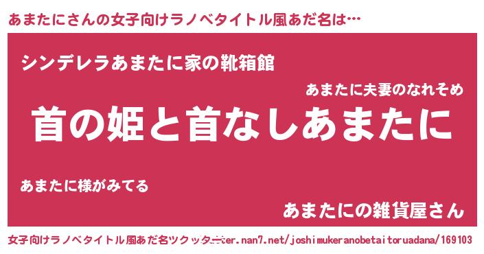 | 男性向けラノベタイトル風あだ名 | 『はたらくあまたにさま!』 |