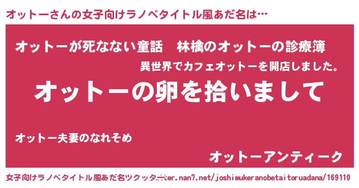 | 男性向けラノベタイトル風あだ名 | 『オットーの嫁は女の子じゃないと思った?』 |