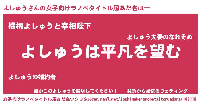| ピコ太郎風あだ名 | 『ヨシ五郎』『ヨコ二郎』『ヨヨ太郎』 |