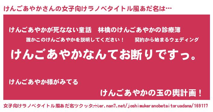| 男性向けラノベタイトル風あだ名 | 『魔法科高校のけんごあやか』 |