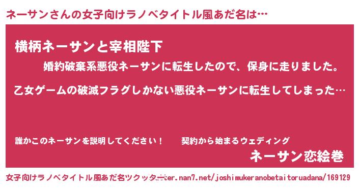 | 意味不明あだ名 | 『住所不定無職ネーサン(3歳)』 |