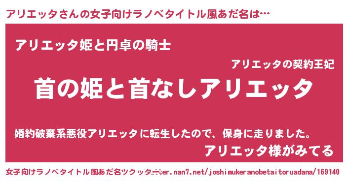 | 男性向けラノベタイトル風あだ名 | 『はたらくアリエッタさま!』 |