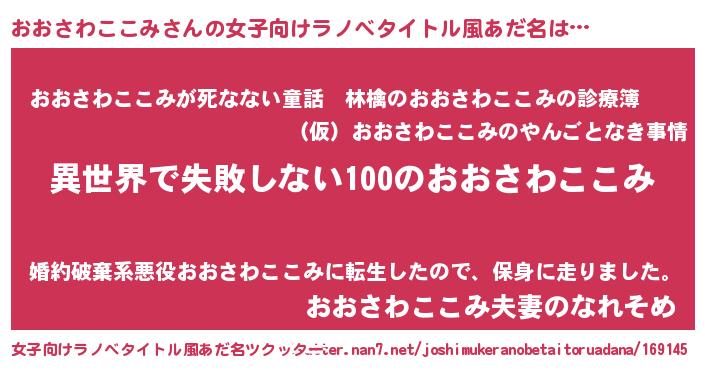 | 男性向けラノベタイトル風あだ名 | 『おおさわここみという概念が存在しない退屈な世界 』 |