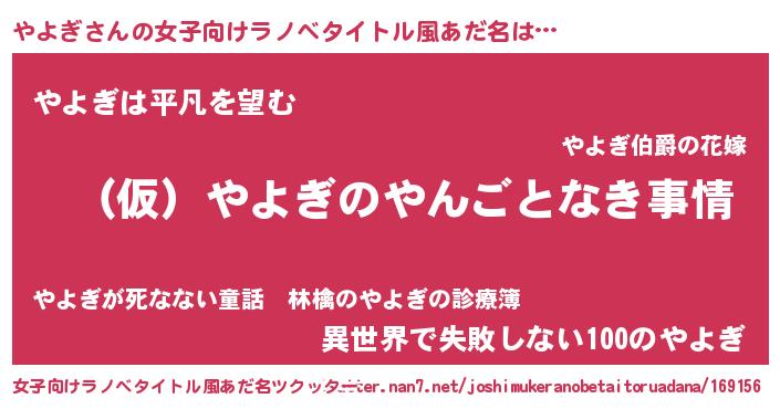| 胡散臭い通販商品みたいなあだ名 | 『必ず成功する霊験あらたかなお札…その名も「やよぎ」』 |