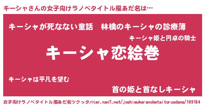 | 男性向けラノベタイトル風あだ名 | 『おまえをオタクにしてやるから、俺をキーシャにしてくれ! 』 |