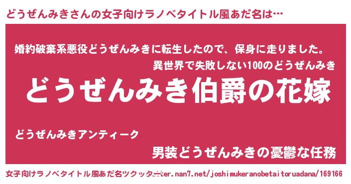 | 男性向けラノベタイトル風あだ名 | 『うちの娘の為ならば、俺はもしかしたらどうぜんみきも倒せるかもしれない。』 |