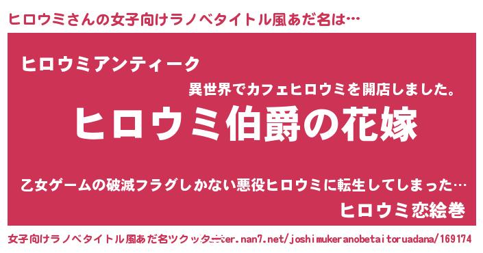 | ファンタジー風あだ名 | 『エターナルヒロウミー』『ゼヒロトゥ』 |
