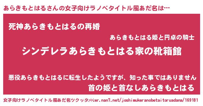 | 男性向けラノベタイトル風あだ名 | 『緋弾のアラキモトハル』 |