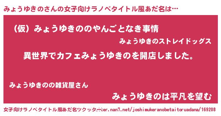 | 男性向けラノベタイトル風あだ名 | 『誰もが恐れるあのみょうゆきのが、ぼくの専属メイドになるようです。』 |