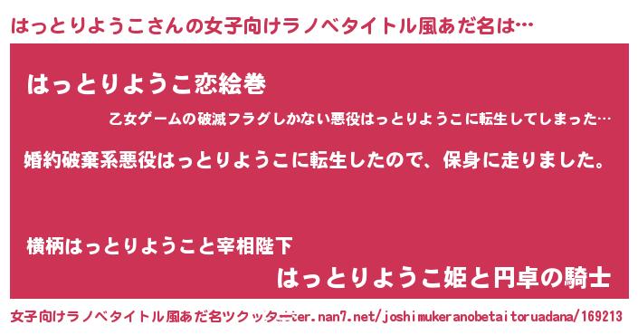| ヒーロー風カッコイイあだ名 | 『愛の使者はっとりようこ』 |