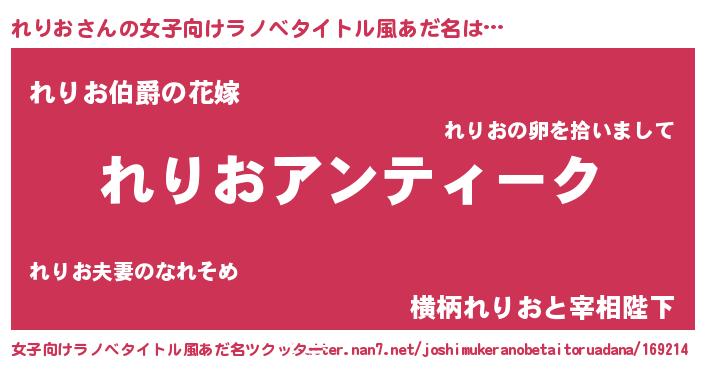 | 肩書あだ名 | 『れりお閣下』『れりお総理大臣』 |