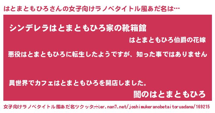 | 男性向けラノベタイトル風あだ名 | 『この素晴らしい世界にはとまともひろを!』 |