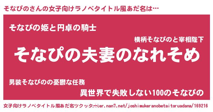 | ヒーロー風カッコイイあだ名 | 『正義の使者そなぴの』『ネオソナピノ』 |