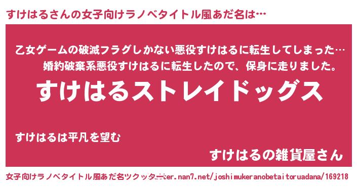 | 男性向けラノベタイトル風あだ名 | 『Re:すけはるから始める異世界生活』 |