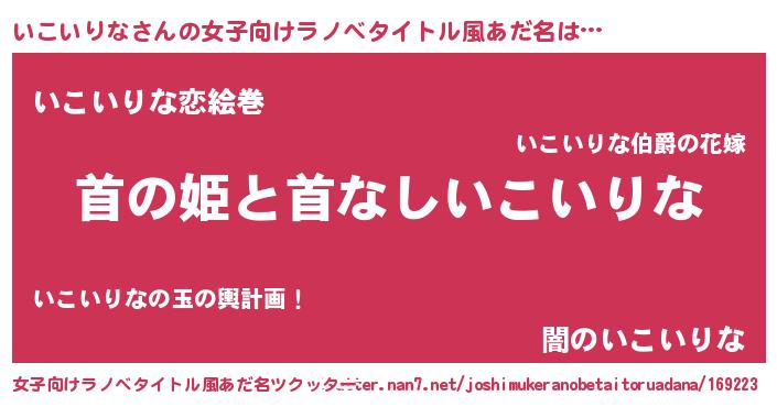| 男性向けラノベタイトル風あだ名 | 『はたらくいこいりなさま!』 |