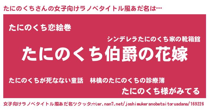 | ファンタジー風あだ名 | 『エターナルタニノクチー』 |