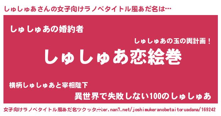 | ヒーロー風カッコイイあだ名 | 『友情の使者しゅしゅあ』『炎刃騎士シュ』 |