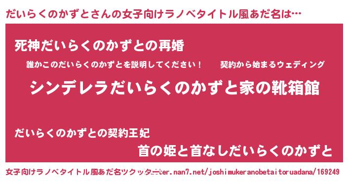 | 男性向けラノベタイトル風あだ名 | 『冴えないだいらくのかずとの育てかた』 |