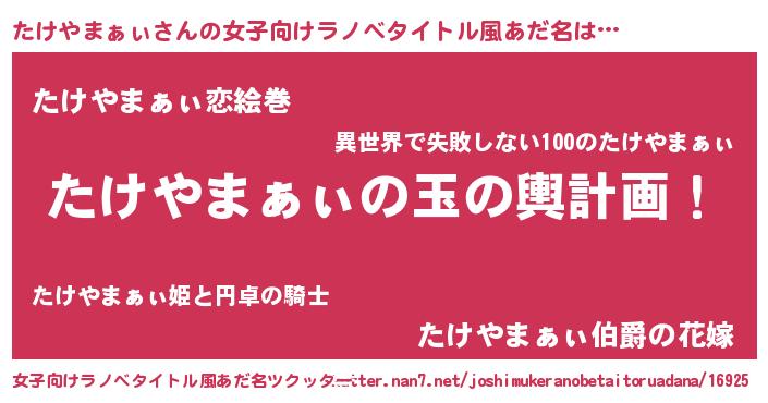 | 肩書あだ名 | 『たけやまぁぃ大佐』『たけやまぁぃ教頭』 |
