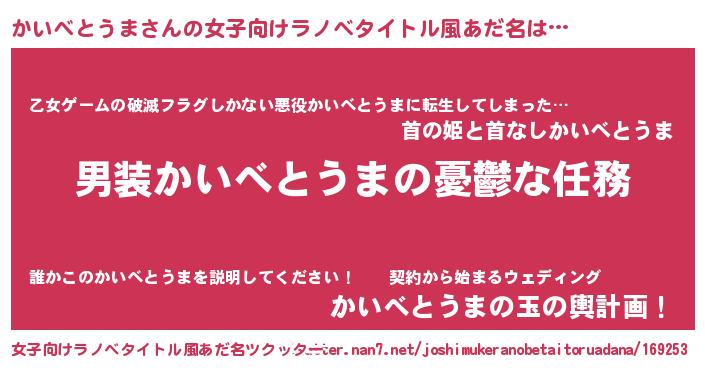 | 男性向けラノベタイトル風あだ名 | 『うちのかいべとうまが世界を掌握している!』 |