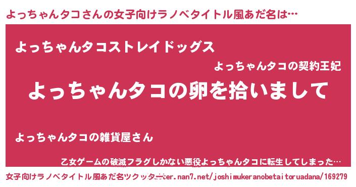 男性向けラノベタイトル風あだ名 | 『よっちゃんタコの嫁は女の子じゃないと思った?』 |