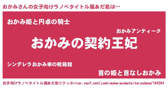 | 男性向けラノベタイトル風あだ名 | 『おかみという概念が存在しない退屈な世界 』 |