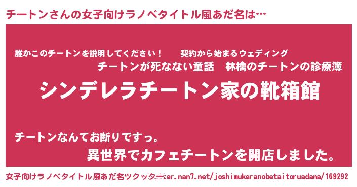 | 男性向けラノベタイトル風あだ名 | 『緋弾のチートン』『魔弾の王とチートン』 |