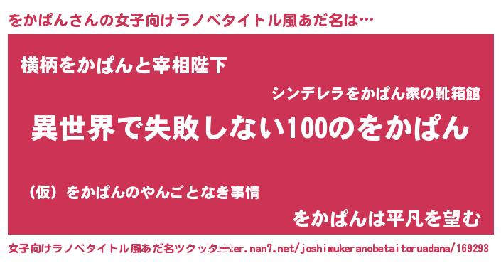 | 男性向けラノベタイトル風あだ名 | 『をかぱんという概念が存在しない退屈な世界 』 |