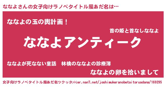 | 胡散臭い通販商品みたいなあだ名 | 『テレビで話題のアガリクス…その名も「ななよ」』 |