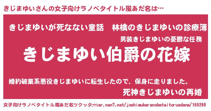 | 男性向けラノベタイトル風あだ名 | 『やはりきじまゆいの青春ラブコメはまちがっている 』 |