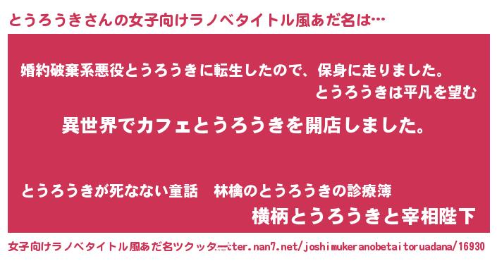 | 意味不明あだ名 | 『永久保存とうろうき』 |