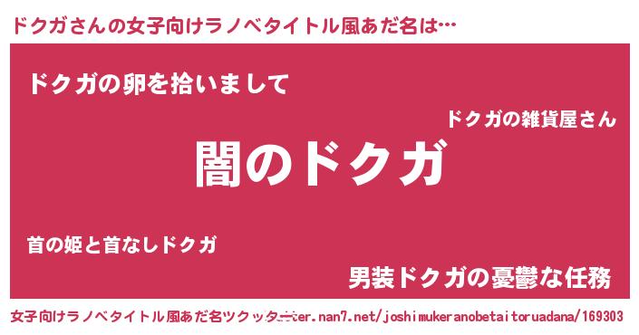 男性向けラノベタイトル風あだ名 | 『Re:ドクガから始める異世界生活』 |