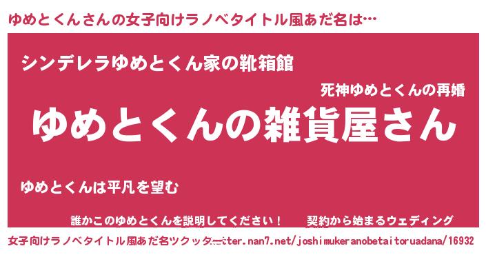 | 男性向けラノベタイトル風あだ名 | 『やはりゆめとくんの青春ラブコメはまちがっている 』 |