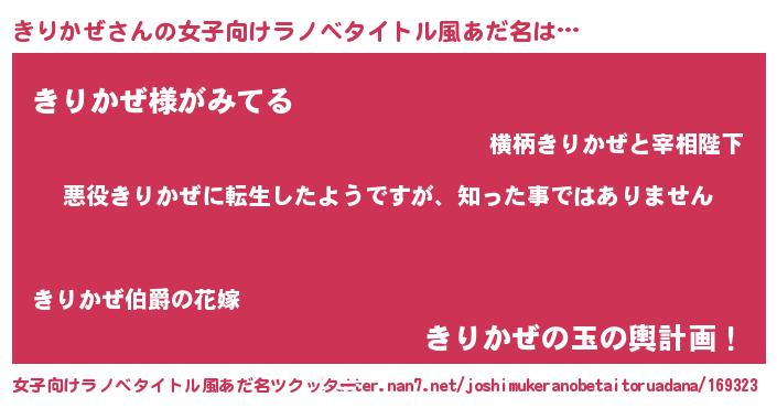 | 男性向けラノベタイトル風あだ名 | 『この素晴らしい世界にきりかぜを!』 |