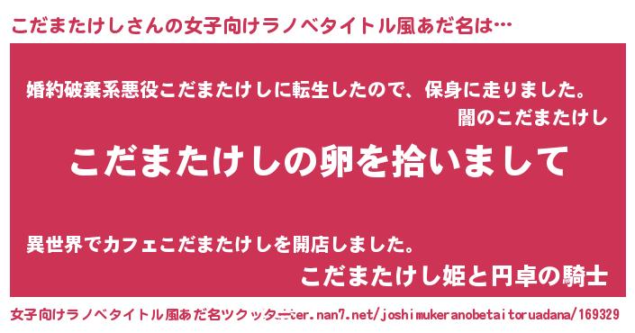 | 胡散臭い通販商品みたいなあだ名 | 『伝統あるサプリメント…その名も「こだまたけし」』 |