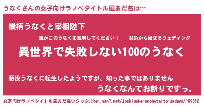 | 男性向けラノベタイトル風あだ名 | 『うなくという概念が存在しない退屈な世界 』 |