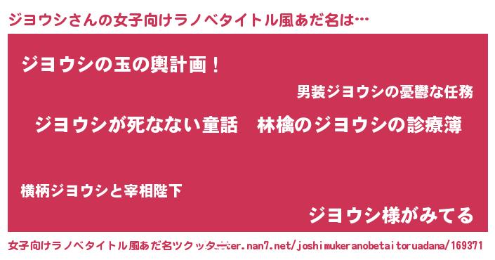 | 胡散臭い通販商品みたいなあだ名 | 『ハリウッド女優が絶賛した100年もののヴィンテージワイン…その名も「ジヨウシ」』 |